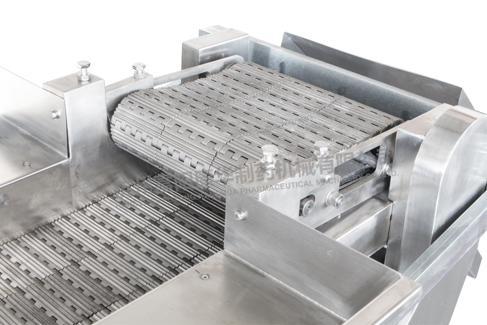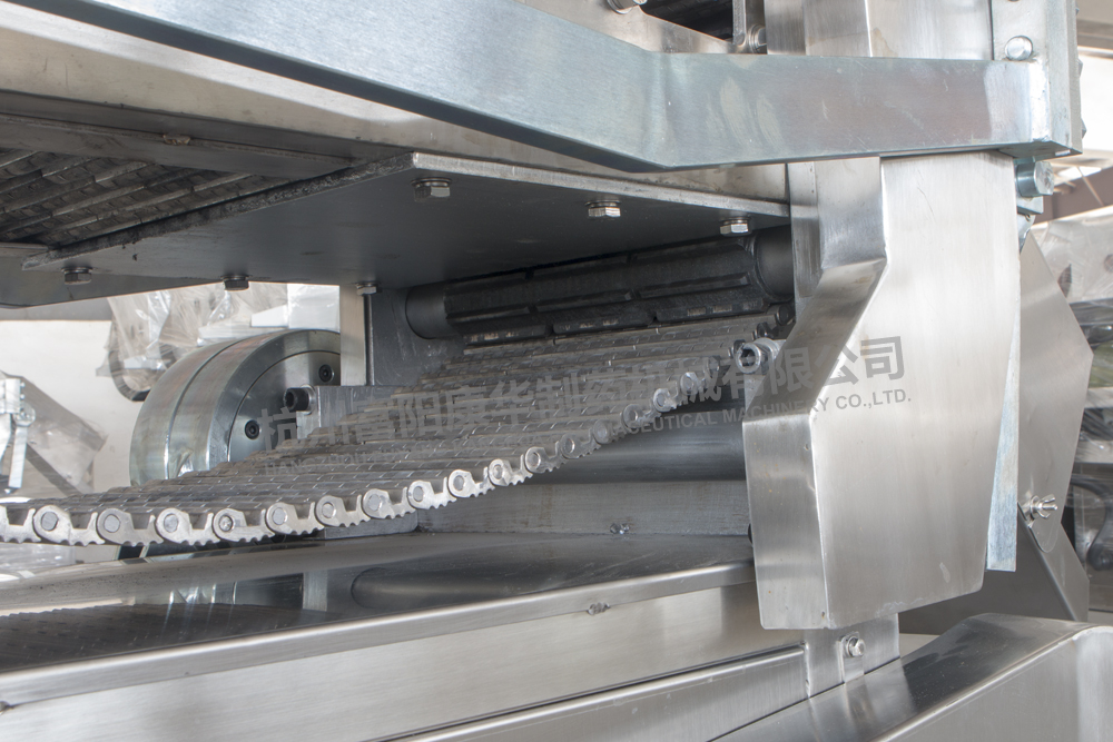 采用不銹鋼鏈條連續(xù)輸送物料,操作簡單,生產效率高;該機具有運轉平穩(wěn)、噪音低、維修方便等特點,符合GMP要求。
