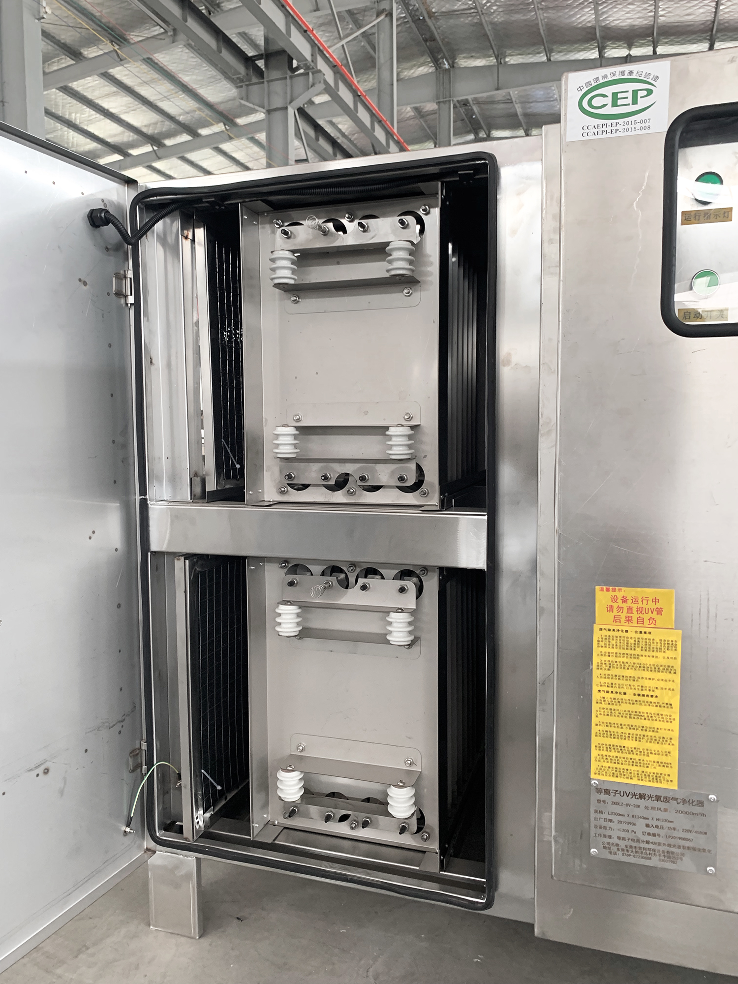 工作原理:在光解區(qū),利用特制的高能高臭氧UV紫外線光束照射異味氣體,經(jīng)多級凈化后徹底達到脫臭及殺滅細菌的目的;在分解區(qū),低溫等離子體降解污染物是利用這些高能電子、自由基等活性粒子和廢氣中的污染物作用,使污染物分子在極短的時間內(nèi)發(fā)生分解,并發(fā)生后續(xù)的各種反應以達到降解污染物的目的。最終達到排放標準。
